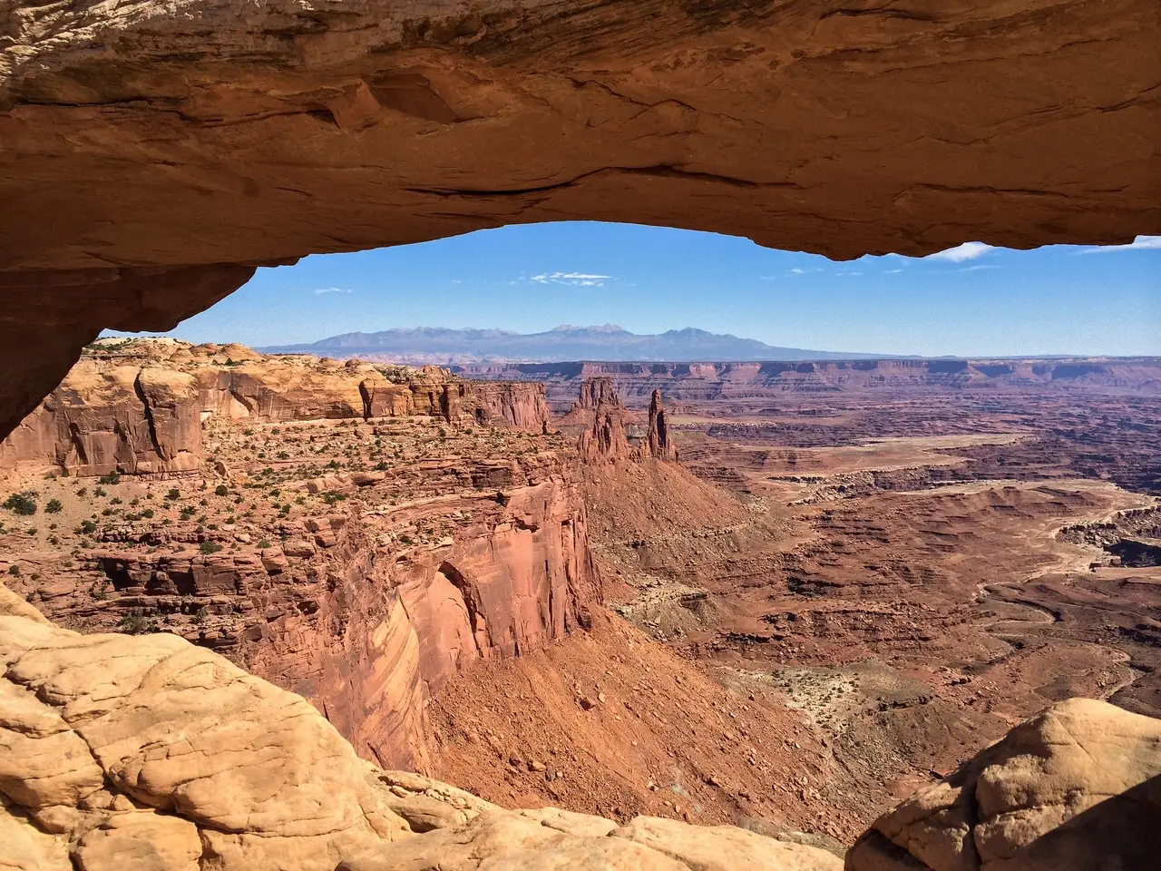 Beim Eingang fragte ich die Rangerin beiläufig ob denn der Shafer Trail und die Potash Road befahrbar wären. Ja, waren sie, gut zu wissen. Am Trailhead zum Mesa Arch hielt ich an und folgten dem kurzen Weg zum wohl beeindrucktesten Punkt, den ich bei meinen ganzen USA Reisen je gesehen habe. Der Blick durch den Mesa Arch in die gewaltigen Tiefen der Canyonlands ließ meinen Atem stocken. Ja, hier wollte ich die Sonne aufgehen sehen, und zwar von Anfang bis Ende.