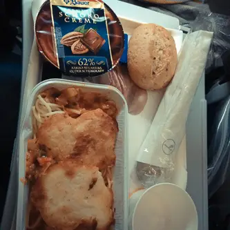 Wir hatten zum Glück In-Seat Entertainment, so vergehen die Flüge immer etwas schneller. Kurz in der Luft und den halben Teil der „Truman Show“ später kam auch schon die nette Dame mit dem Essen. In Reihe 42 wird man nicht mehr nach „Chicken or Pasta?“ gefragt, du musst einfach nehmen was übrig bleibt. In diesem Fall war Kartoffelgratin übrig, das ich eigentlich sowieso nehmen wollte. Es war … OK… jaaaaa, ok. Weiter ging es mit der Truman Show, danach „Bad Teacher“, als nächstes „Der Zoowärter“. Danach kam der zweite Gang. Dieses Mal waren zufällig beide Sorten übrig, hier Chicken mit Pasta (mal was anderes) oder auch auch nur Pasta. Zugegeben, diese war sogar lecker. Nach dem Essen vertrieb ich mir die Zeit mit „Freunde mit Gewissen Vorzügen“, Lufthansa steht wohl auf Timberlake. Leider konnte ich den nicht mehr zu Ende gucken, da wir schon zur Landung ansetzten, und die Lufthansa schon vorher die Kopfhörer einsammelt. Die geben noch Acht auf ihr Eigentum.