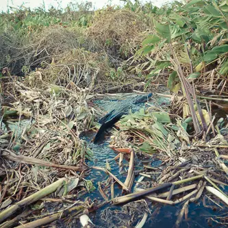 Wir hatten das Boot fast für uns, nur ein Vater mit zwei Kindern gesellte sich noch dazu. Ein Vorteil individuell anzureisen. Das Airboat startete und wir durchquerten das hohe Sumpfgras. Auch wenn man nicht viele Tiere sehen würde, ist Airboatfahren ein richtig tolles Erlebnis. Zum Einen hat es damit zu tun, dass man zwischen Wasseroberfläche und Sitzplatz höchstens 50 Zentimeter hat, zum Anderen die Faszination über jedliches Gestrüp fahren zu können. Die Fahrer passen aber auf, und benutzen immer nur abgesteckte „Wasserstraßen“ um die Natur nicht zu beschädigen. Im Nationalpark sind übrigens Airboats komplett verboten. Dies ist logisch, denn die Biotope werden leider dennoch geschädigt und die Tierwelt gestört. Ich rutschte etwas ungeduldig auf meinem Sitz hin und her, hatte ich ja letztes Jahr bereits nach 2 Minuten die ersten „Gator“ erspähen können. Doch da, da schwamm einer. Langsam fuhren wir das bewachsene Ufer entlang.