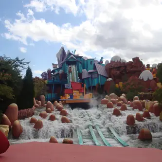 Mein Herz machte Sprünge als wir fast bis zum Einstieg durchgehen konnten. Der Park war fast leer. Nach 5 Minuten waren wir auch schon dran. Auf dem Weg zur nächsten Bahn sangen immer wieder Mitarbeiter Geburtstagsständchen und Captain America persönlich gratulierte mir. Spiderman ist eine 3D Bahn durch die man fährt, fand ich super klasse. Es war heiterer Sonnenschein, daher trauten wir uns auf die Popeye & Bluto’s Bilge-Rat Barges® Wildwasserbahn. Rafting. Ich hatte schlechte Erfahrungen schon vor zwei Jahren im Seaworld gemacht. Die Bahn ist echt klasse, aber es wird nicht mit Wasser gespart. Nach 30 Sekunden war ein Junge der mir gegenüber saß komplett durchtränkt. Ich betete, dass ich einigermaßen trocken aus der Bahn käme. Es wurde nicht erhört, in der nächsten Sekunde machte es Platsch und ich war von oben bis unten nass. Ebenso blieben die anderen Mädels nicht verschont. Unsere Sneakers quietschten beim Verlassen der Bahn.