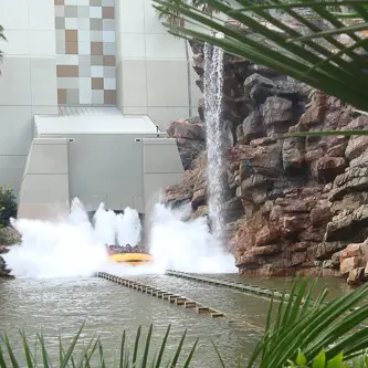 Ich sah Kinder, die wie vor einem Popstar stehend ausrasteten. Wir interessieren uns nicht so für Potter, vielmehr aber für die neue Drachenachterbahn. Zu vergleichen mit der Black Mamba im Phantasialand, nur 4 x so groß. Wir fuhren einmal mit dem Roten, danach gleich mit dem blauen Drachen, es war keine Wartezeit. So könnte es immer sein. Poseidon’s Fury® kann man sich getrost sparen, besonders wenn man nass ist. Nach gefühlten 20 Minuten Gelaber kommt endlich die Special Effect Feuer Show mit Wasser. Ich war so froh als das Feuer kam, durchnässt und Klimaanlagen passen nicht zusammen. Poseidons Rache war auch nach dem Verlassen der Show zu spüren. Es zogen plötzlich Wolken auf und es begann zu regnen. Es kühlte ab, wir waren immer noch nass. Nicht schön. Bei einem Mittagessen in der Confisco Grille & Backwater Bar überdachten wir den Tag. Der Blick nach draußen versprach nichts Gutes, es regnete was das Zeug hielt.