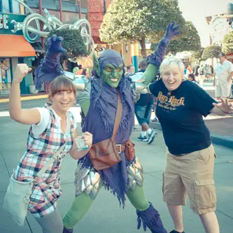 Am Eingang angekommen versuchten wir erst unser Glück an den Ticketautomaten mit der Reservierungsnummer von Elke, aber leider hatten wir kein Glück. So stellten wir uns doch am Ticketschalter an. Eine nette Dame daneben war sehr aufmerksam, als sie einen Ausdruck in unseren Händen sah. „Do you have an e-ticket?“ – „Yes, but we just got the confirmation!“ Schon winkte sie uns an der Schlange und dummen Gesichtern vorbei. Sie tippte die Nummer in den Laptop, ein kurzer Blick auf Elkes Führerschein und schon druckte sie das Ticket aus. Kaum hatten die Mitarbeiter meinen „Birthday Girl“ Pin entdeckt, zogen diese mich auch schon zum Information Schalter und überreichten mir den offiziellen „Universal Studios Birthday Button“ mit meinem Namen. Na dann kann ja nichts mehr schief gehen. Als erstes ging es auf die HULK Bahn, unserer Liebling.