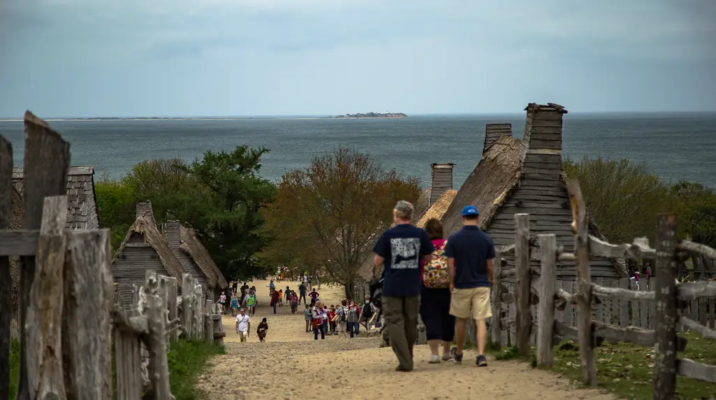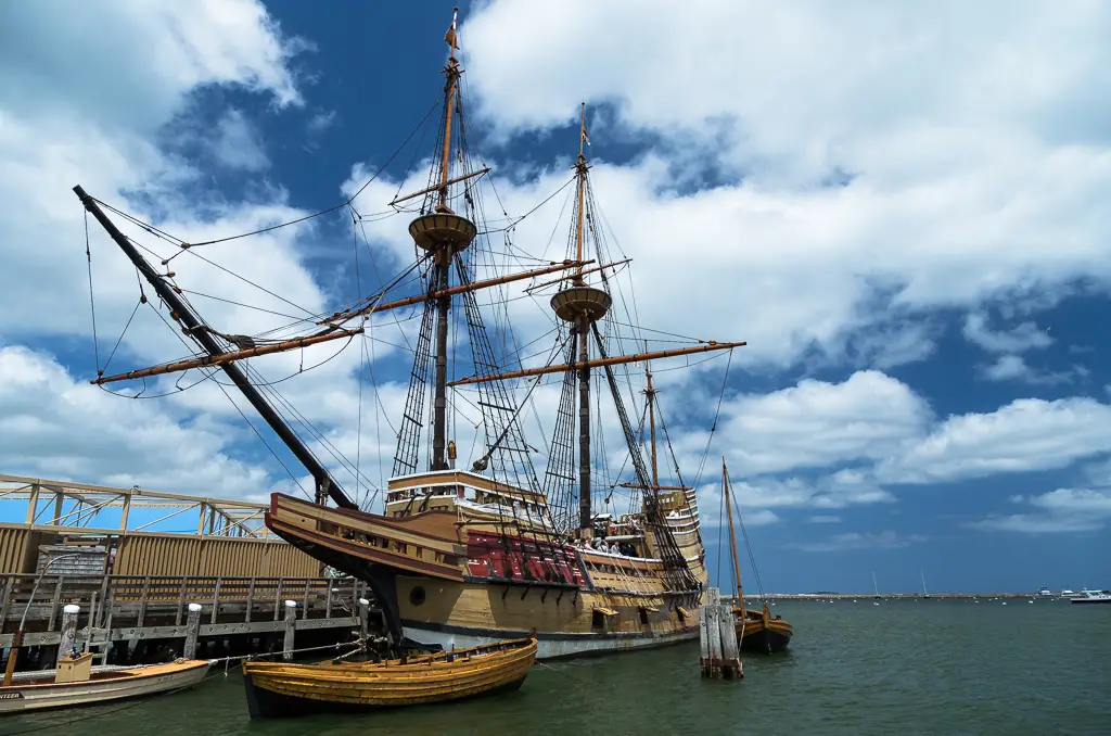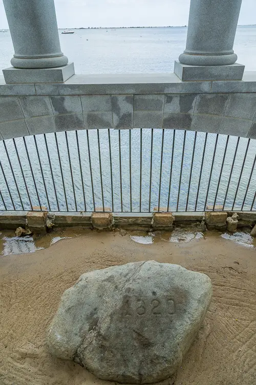 Die, die überlebt haben bauten in Plymouth die erste Siedlung der weißen Männer in den späteren USA. Damals noch mit Hilfe der Ureinwohner. Die Mayflower die dort anlegt ist natürlich nicht das Original, aber es ist dem Original exakt nachgebaut und sogar auch von England nach Cape Cod gesegelt. Dort haben nämlich die Pilgerväter als erstes angelegt, bevor sie nach Plymouth weiterfuhren. In Plymouth gibt es den berühmten Plymouth Rock, über den wohl der erste Schritt auf das fremde Land getan wurde. Dieser ist eingefasst in einem griechischen Tempel, warum auch immer. Auf der Mayflower sind verkleidete Menschen, die auch noch britischen Akzent sprechen und die einem alle Fragen beantworten.